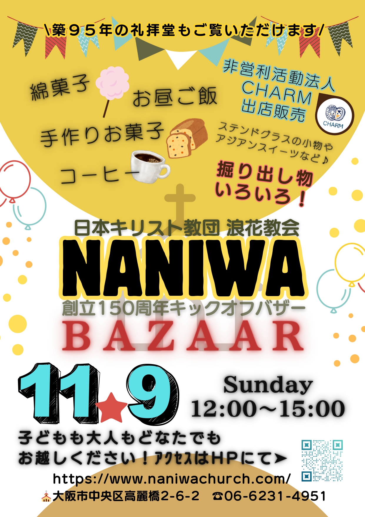 浪花教会バザー(創立150周年キックオフバザー)が開催されます。